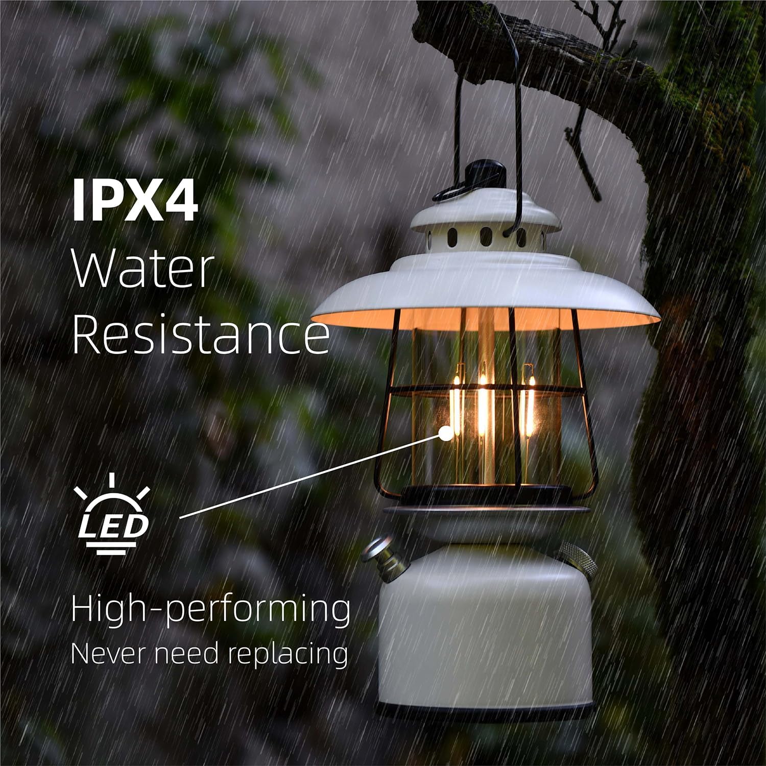 【Unique Vintage Design】This retro camping lantern has both a retro and stylish appearance and the latest LED technology, a perfect blend of retro style and function. It uses tungsten filament light to provide a soft and warm glow to enhance the atmosphere. Camping lantern can be used in gardens, rooms, tents, cafes, bars and parties. This LED camping lamp not only meets the needs of beautiful decoration but also meets the lighting needs of various outdoor activities.