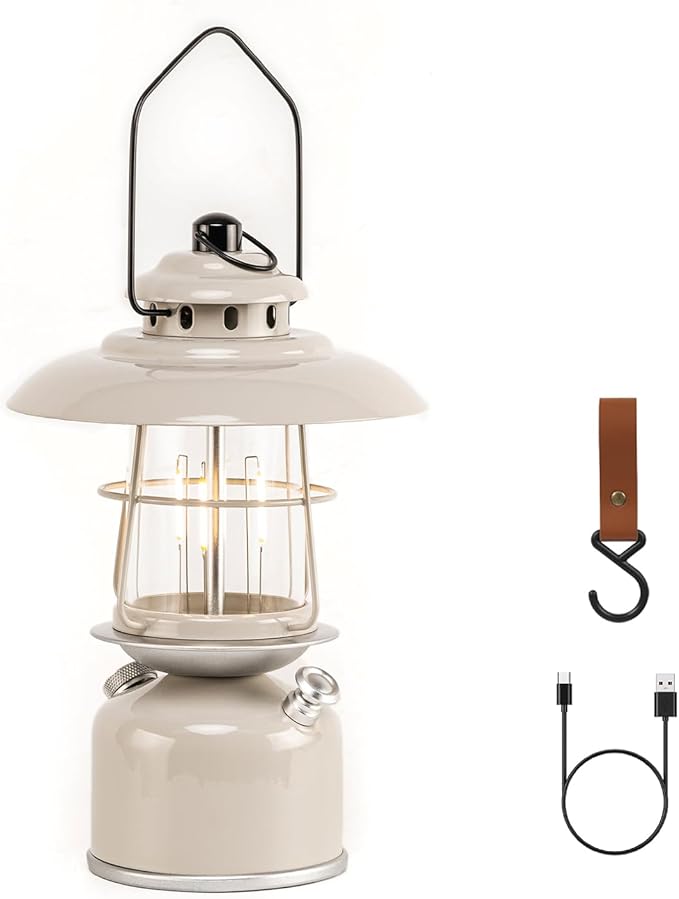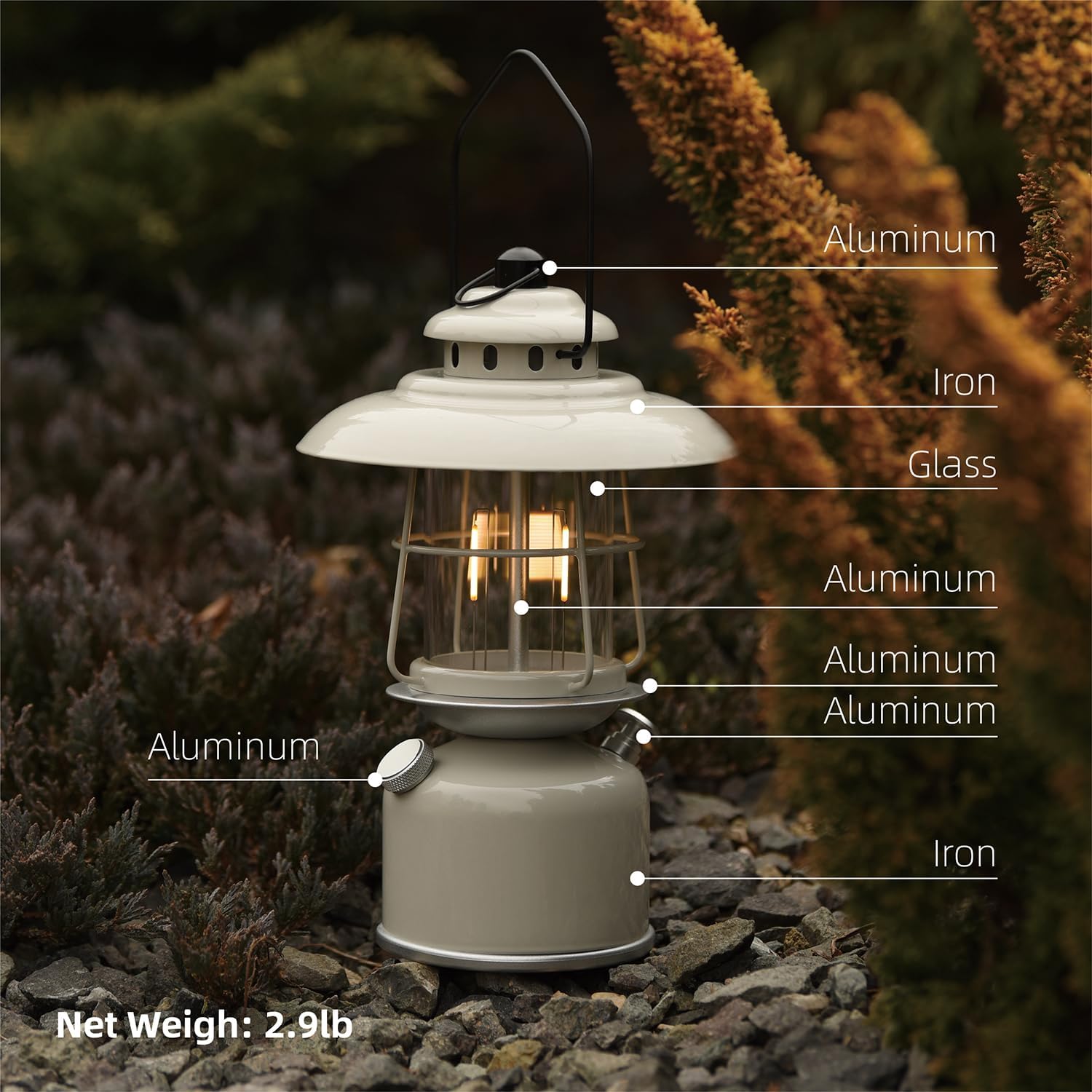 【All Metal Large Camping Light】The shell of the retro camping light is protected by an all metal frame, which is durable and reliable. The special spray painting process makes it look more beautiful. Our rechargeable camping lamp is made of metal, so it is larger and heavier than other camping lights,10.82 inches high*6.9 inches in diameter, and weighs 2.2 pounds.