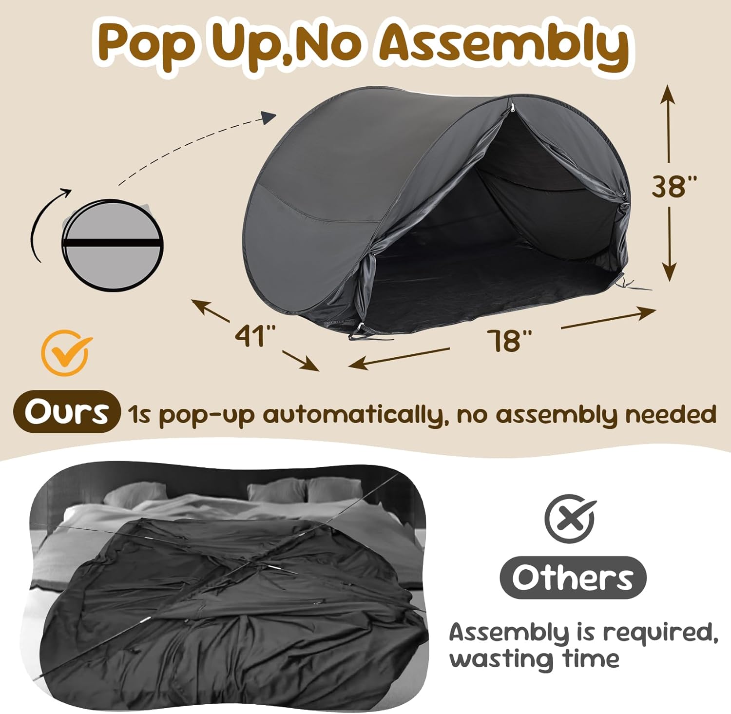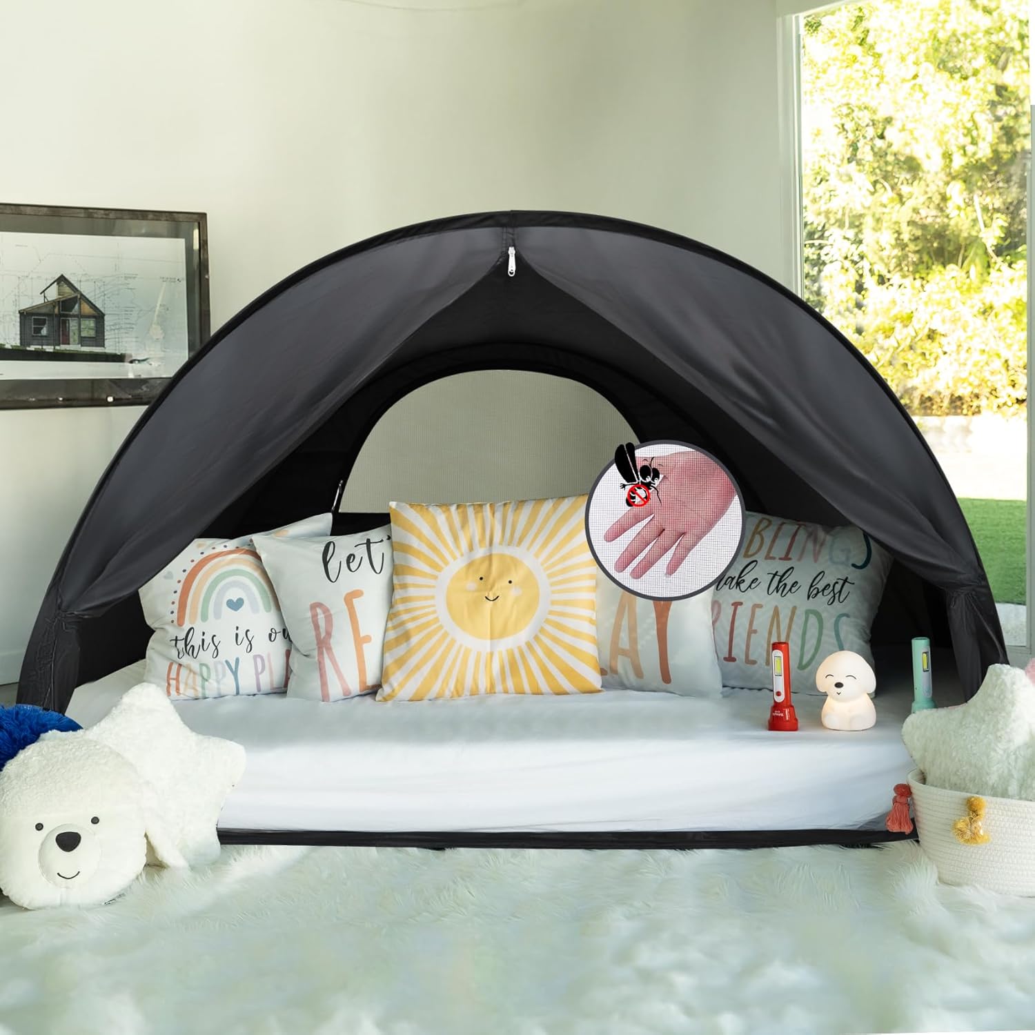 Pop Up Bed Tent with Mesh & Shade Cloth Window,Bed Canopy Shelter Cabin Indoor Privacy Space Sleeping Tents,Blackout Light Reduction Breathable Dream Tent with Portable Bag for Kids Adults Full