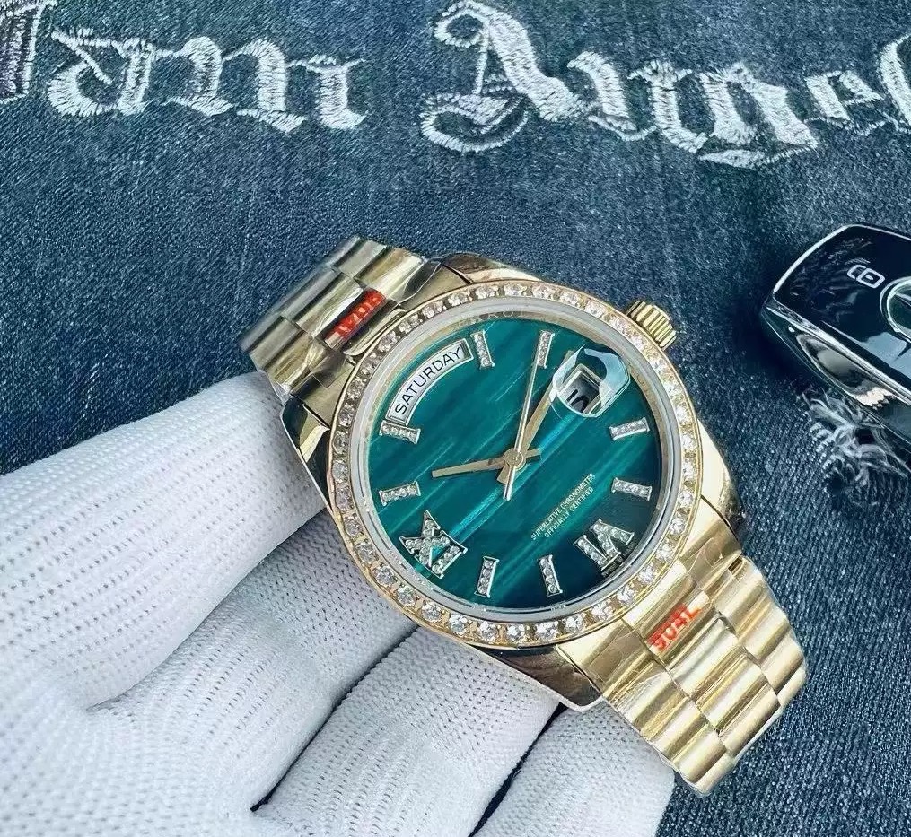 Rolex Datejust Malachite Watch, 36mm Dial, Gold and Silver Two-Piece Set