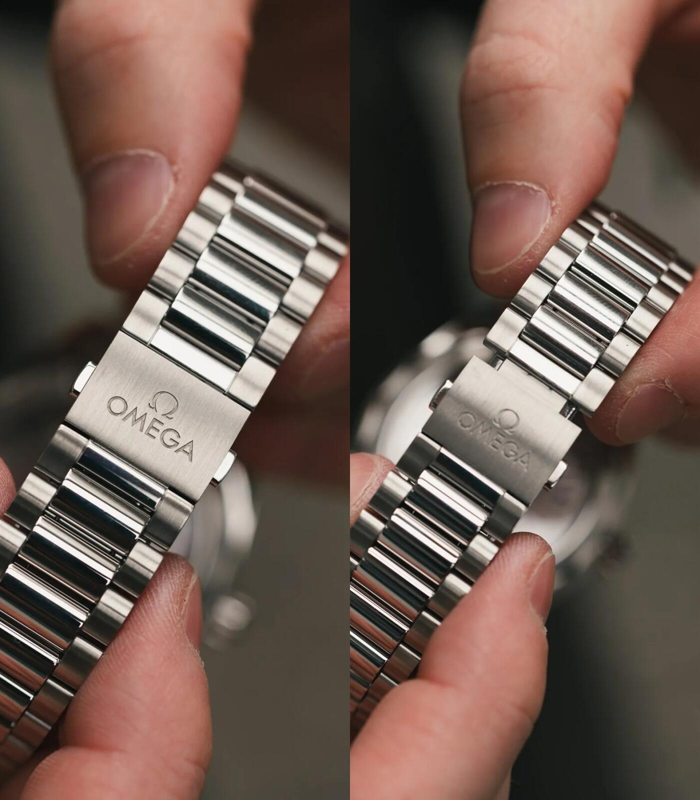 It is powered by the 8800 Master Chronometer movement, is water-resistant to 150 meters, antimagnetic, shock-resistant, and precise. The bracelet is a single piece of stainless steel with a brushed and polished finish, ensuring comfortable wear and durability