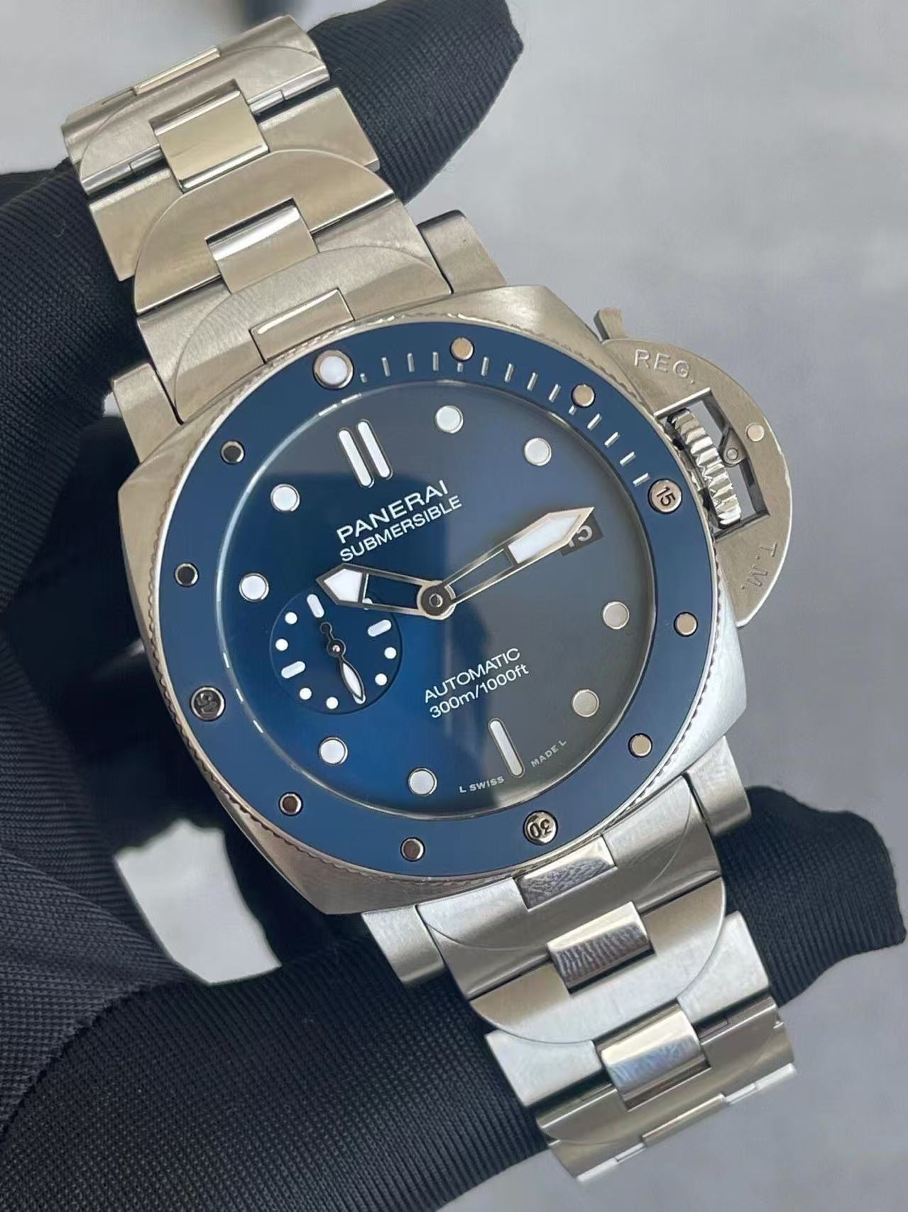 Panerai Submariner series blue dial, model PAM01068, 42mm steel bracelet