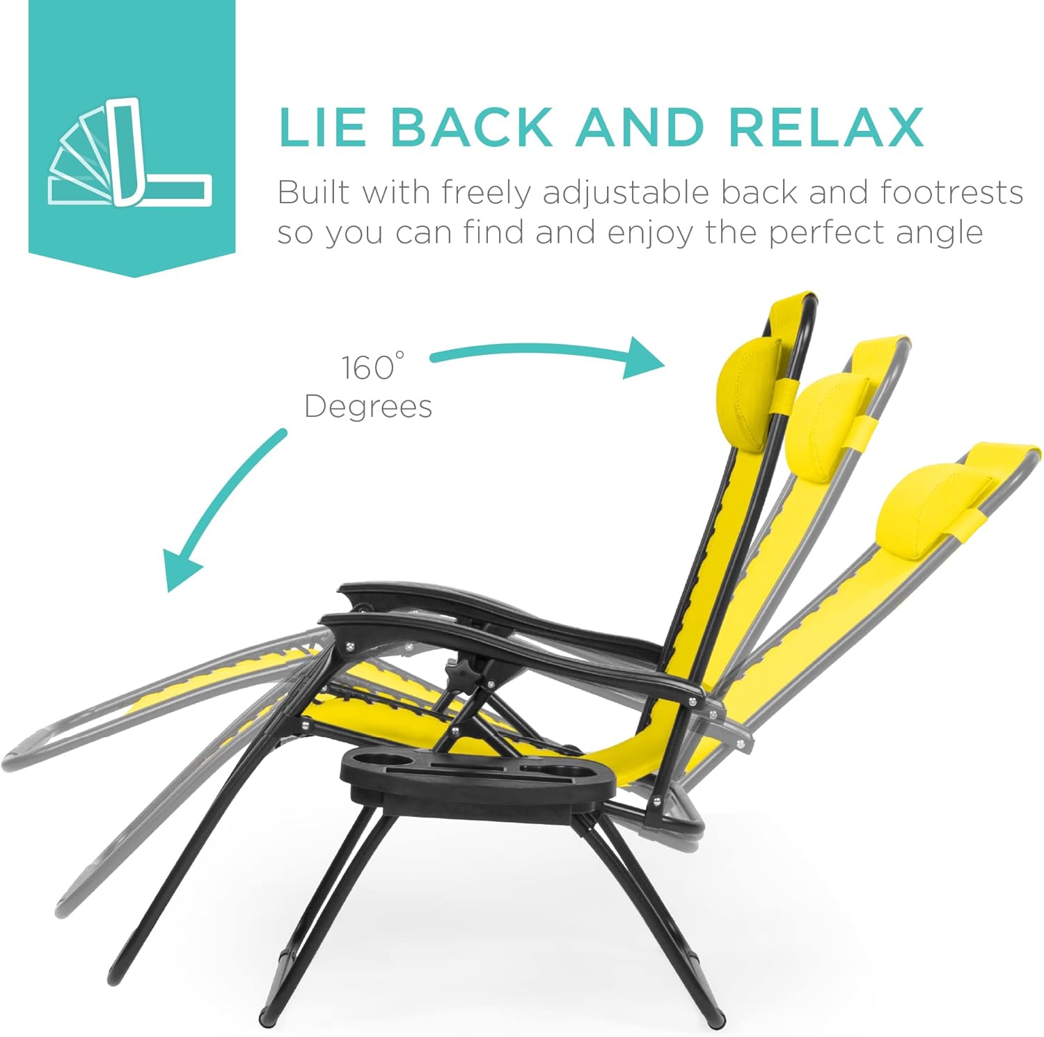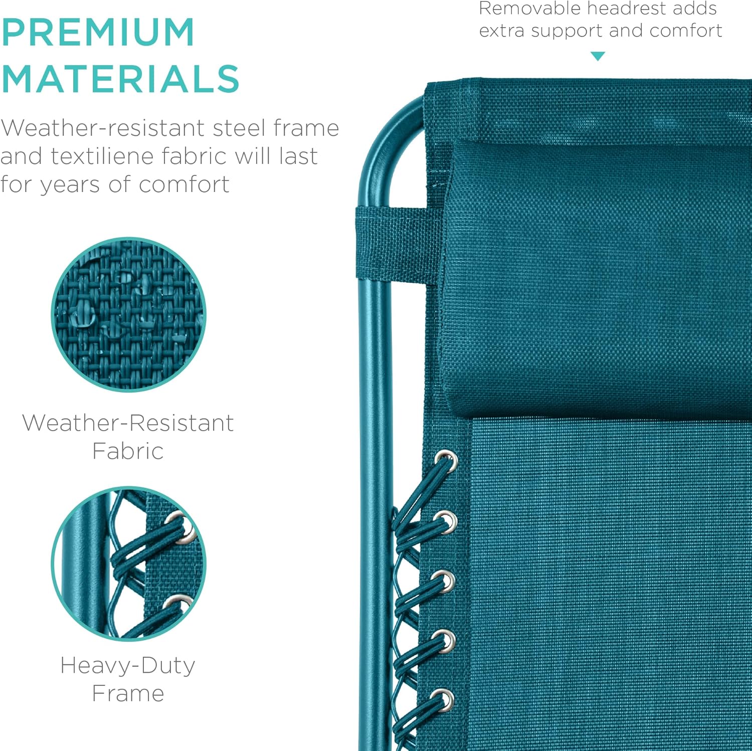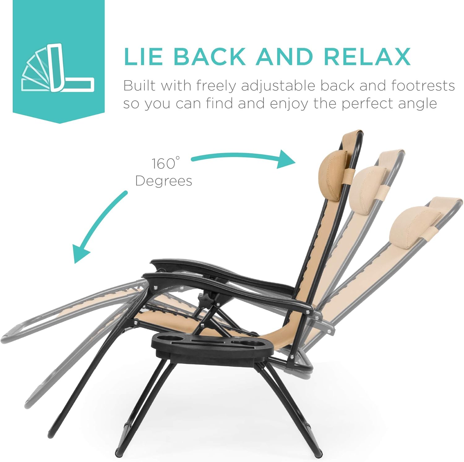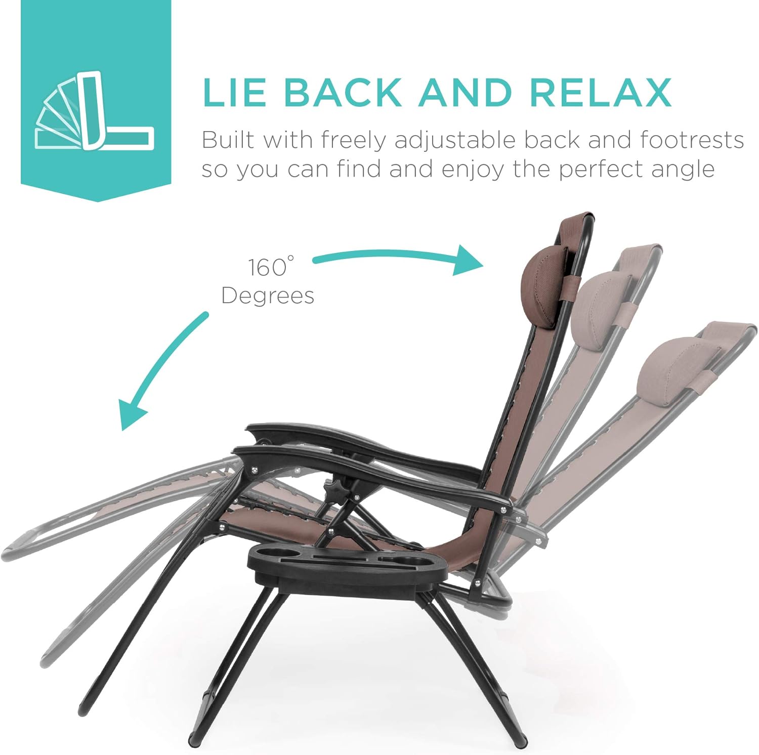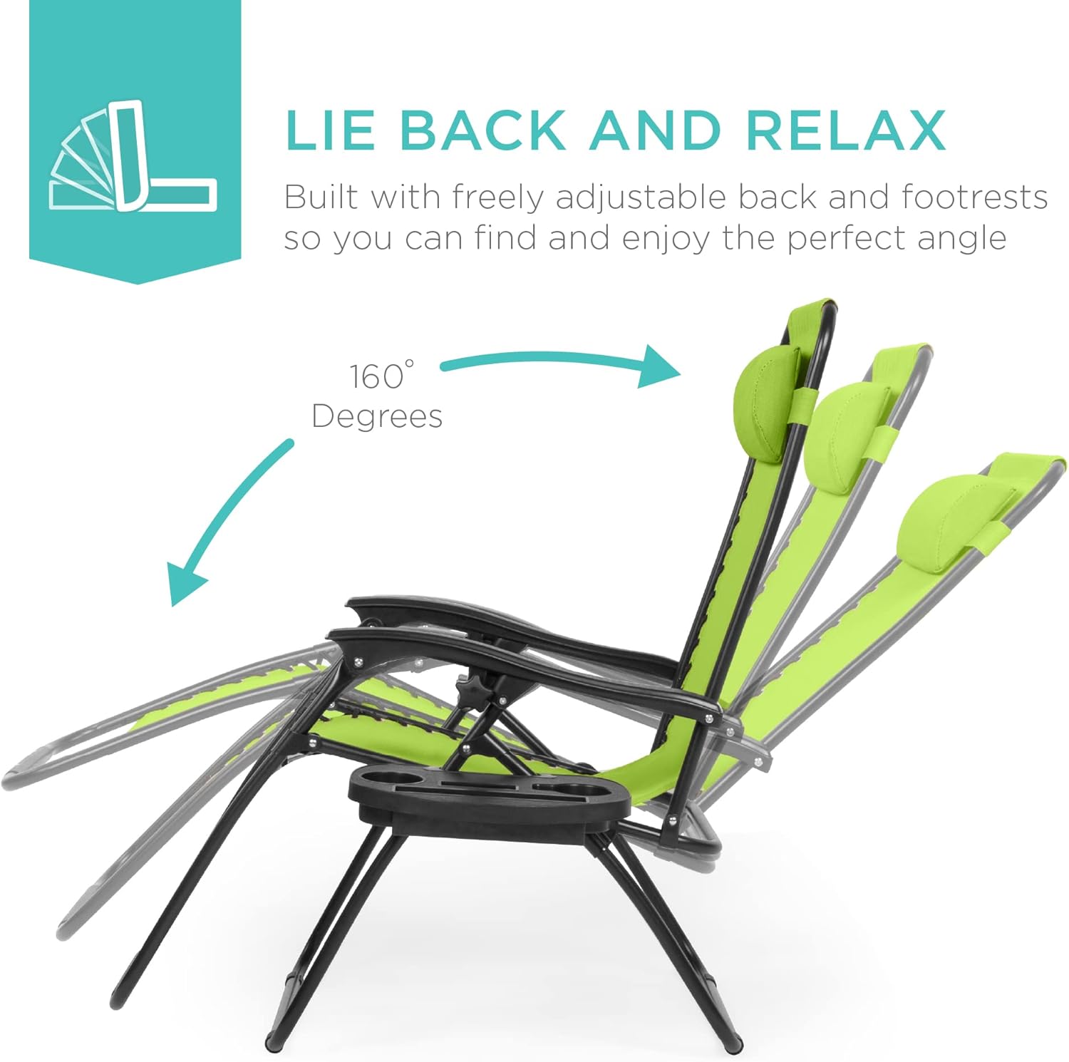 REMOVABLE, ADJUSTABLE HEADRESTS: Includes a removable, padded headrest for an extra element of adjustable comfort; OPEN DIMENSIONS: 32.5"-61"(L) x 25"(W) x 33.5"-44"(H); FOLDED DIMENSIONS: 38"(L) x 25"(W) x 6"(H); WEIGHT CAPACITY: 250 lbs.