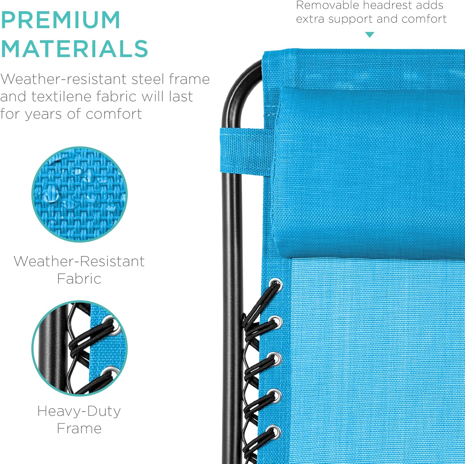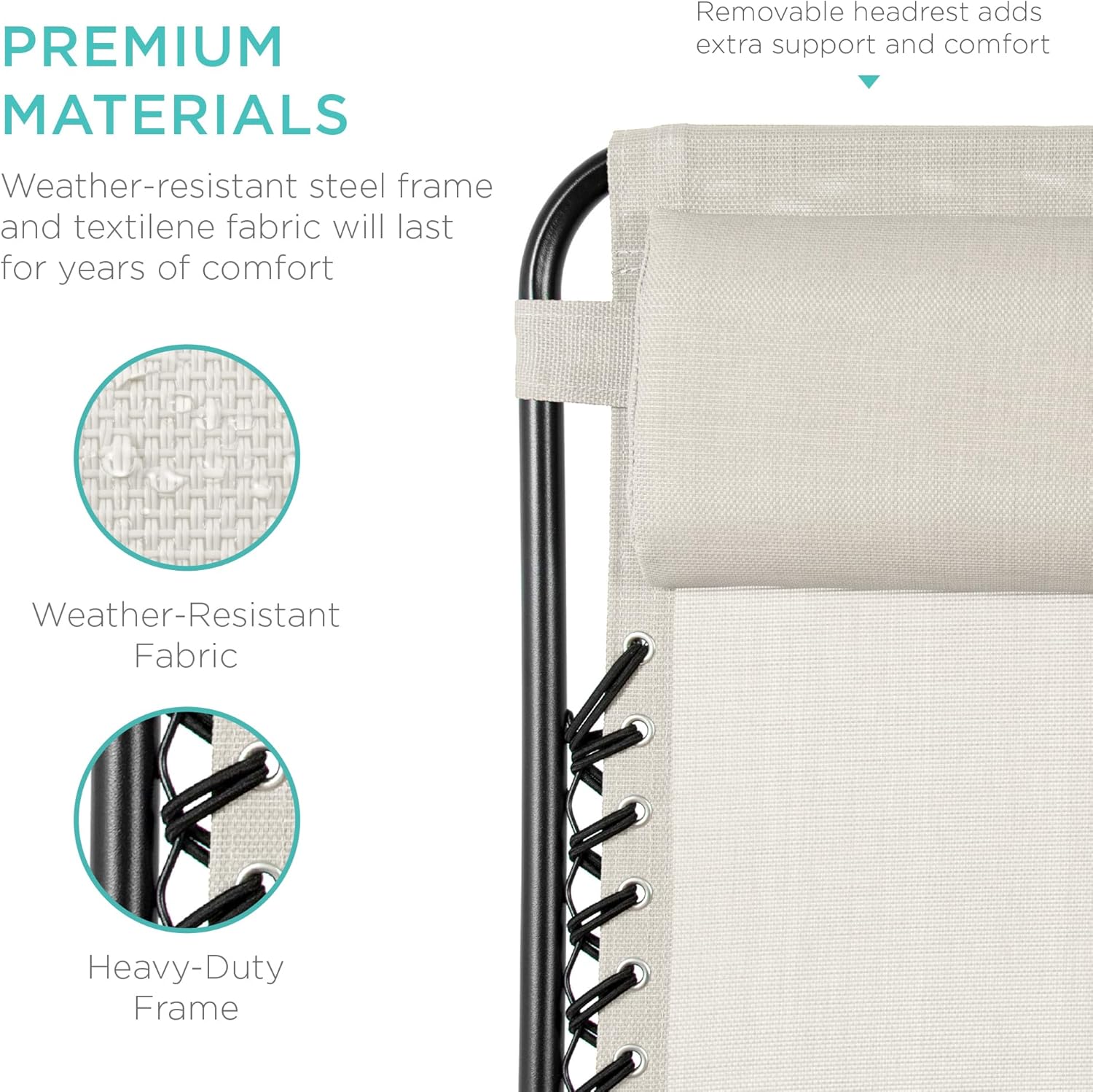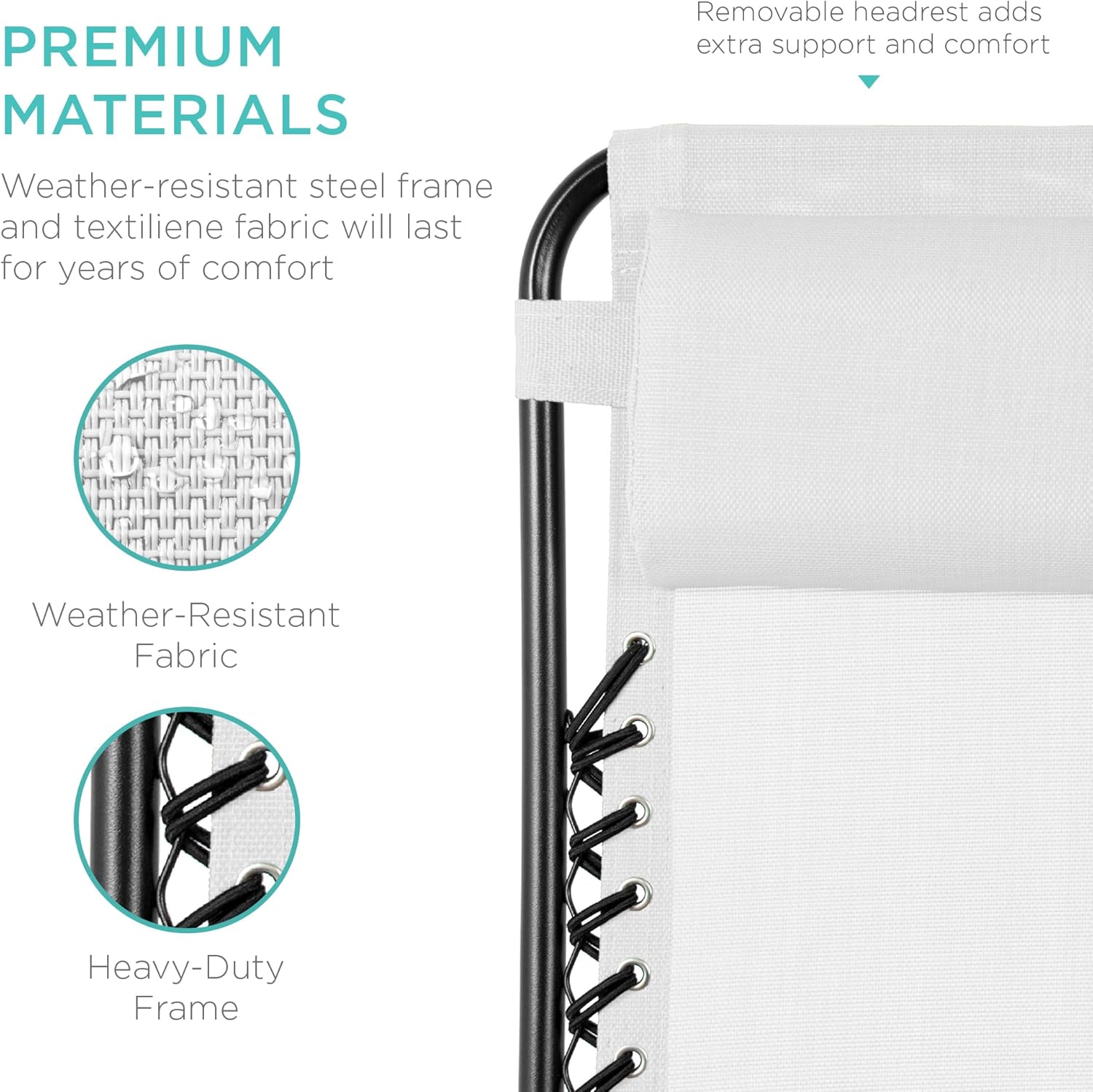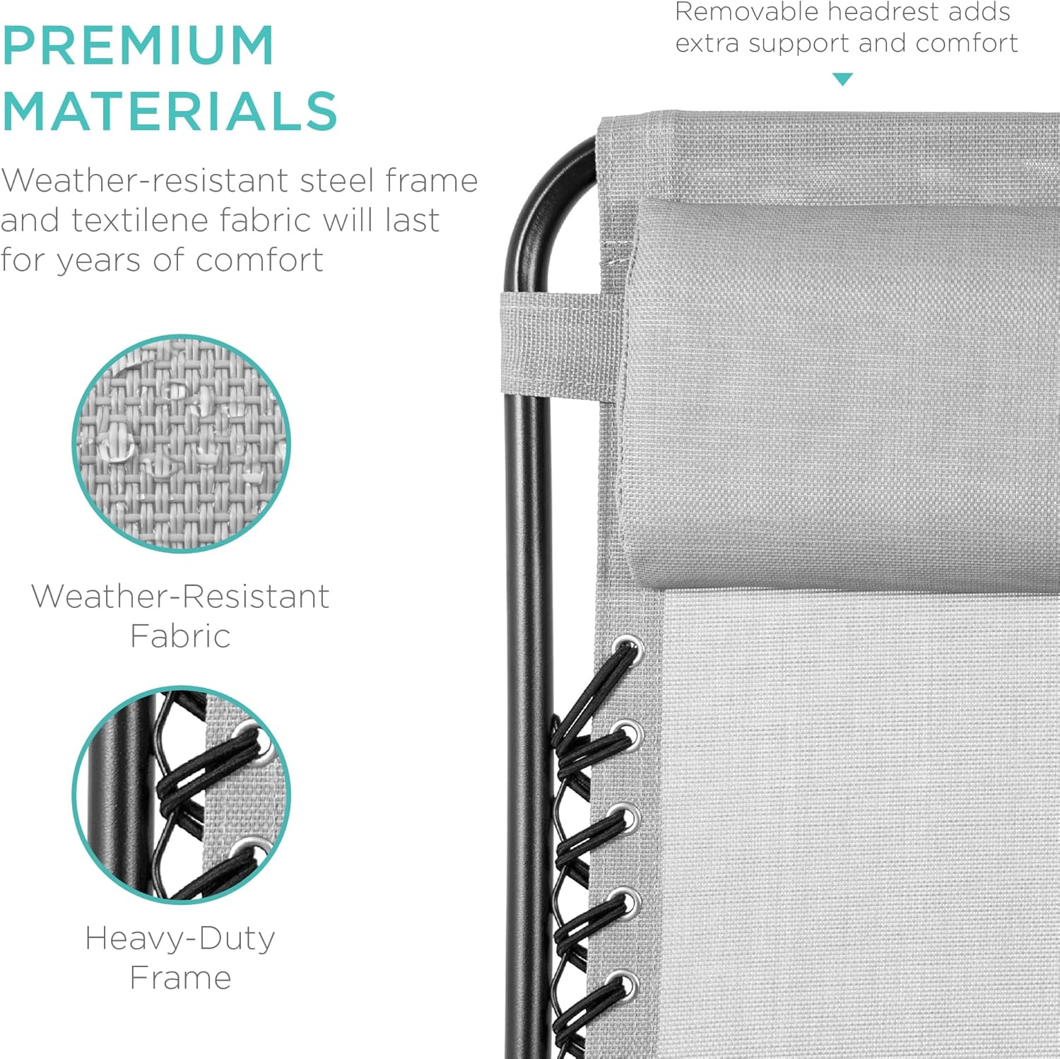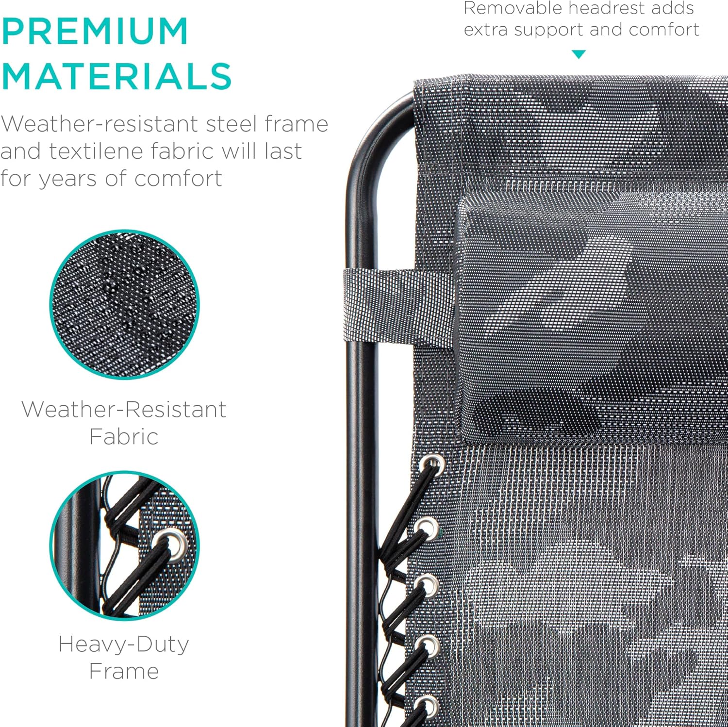 LOCKABLE RECLINING SYSTEM: Smoothly glides into an ergonomic zero-gravity position, with removable elastic cords that immediately adjust to your body's weight