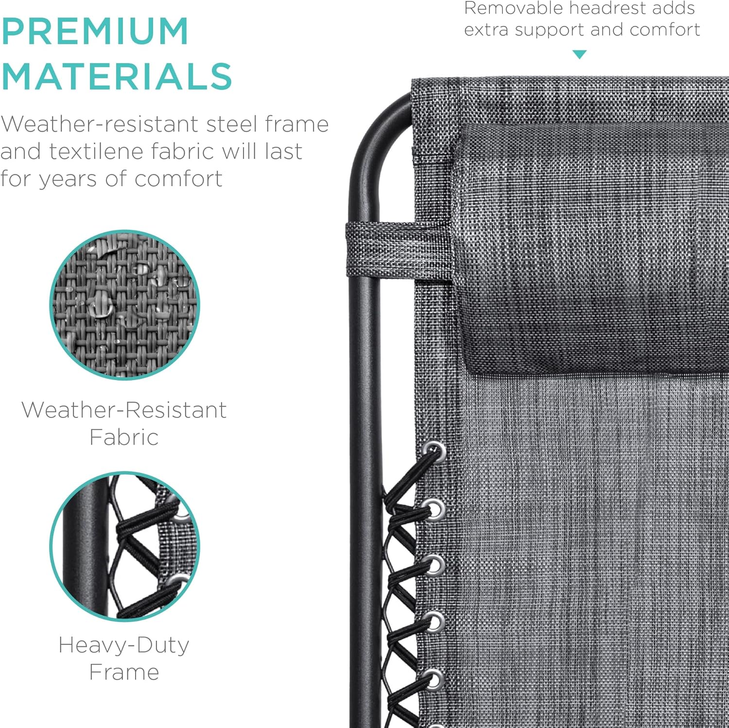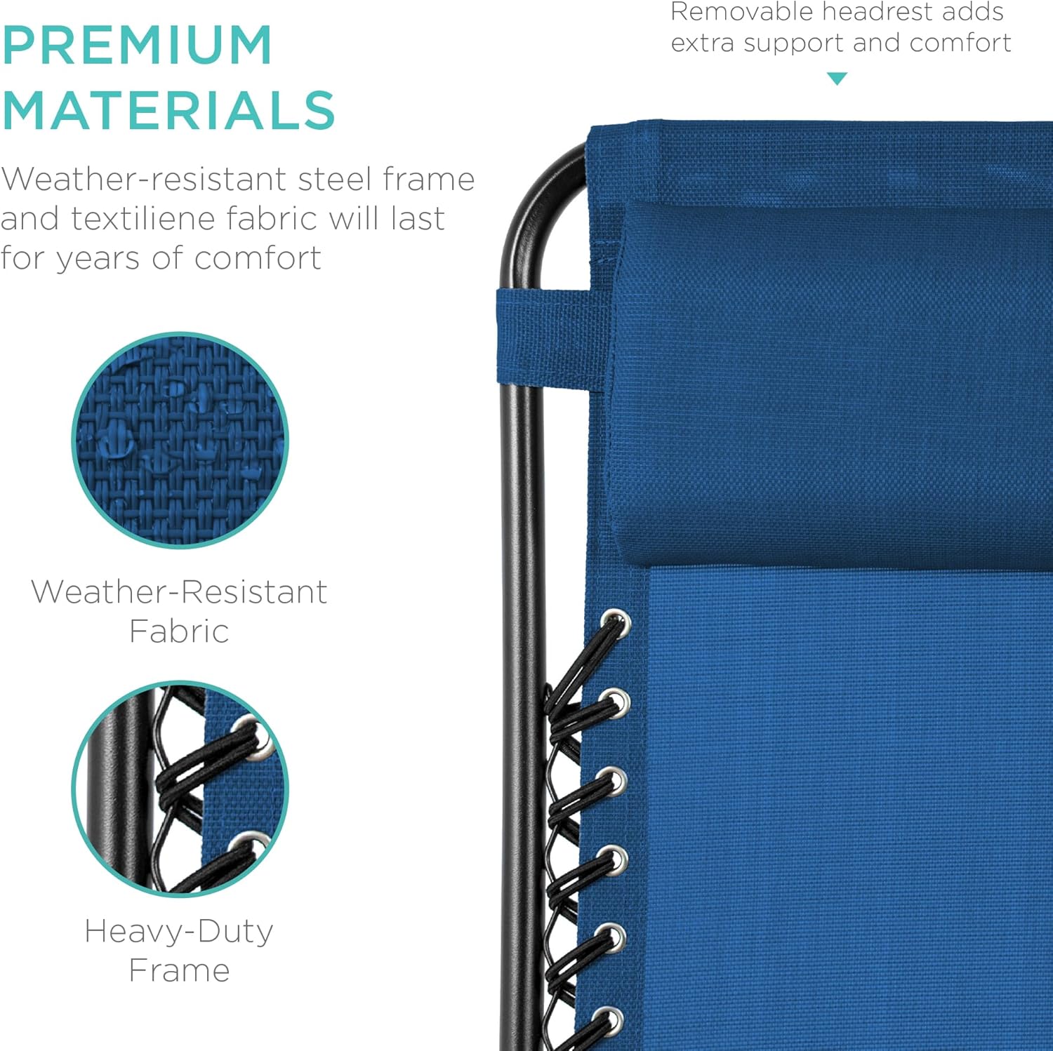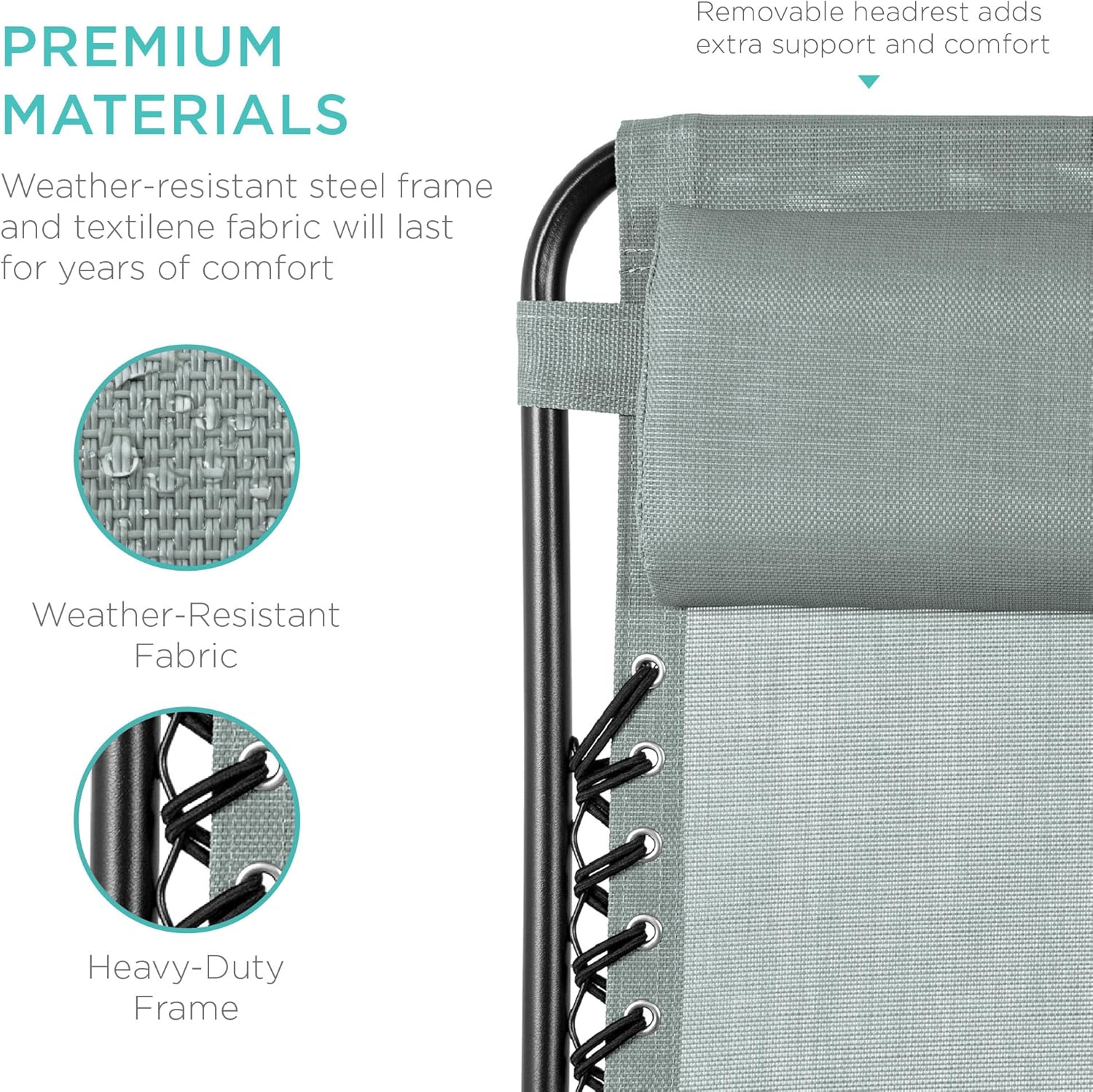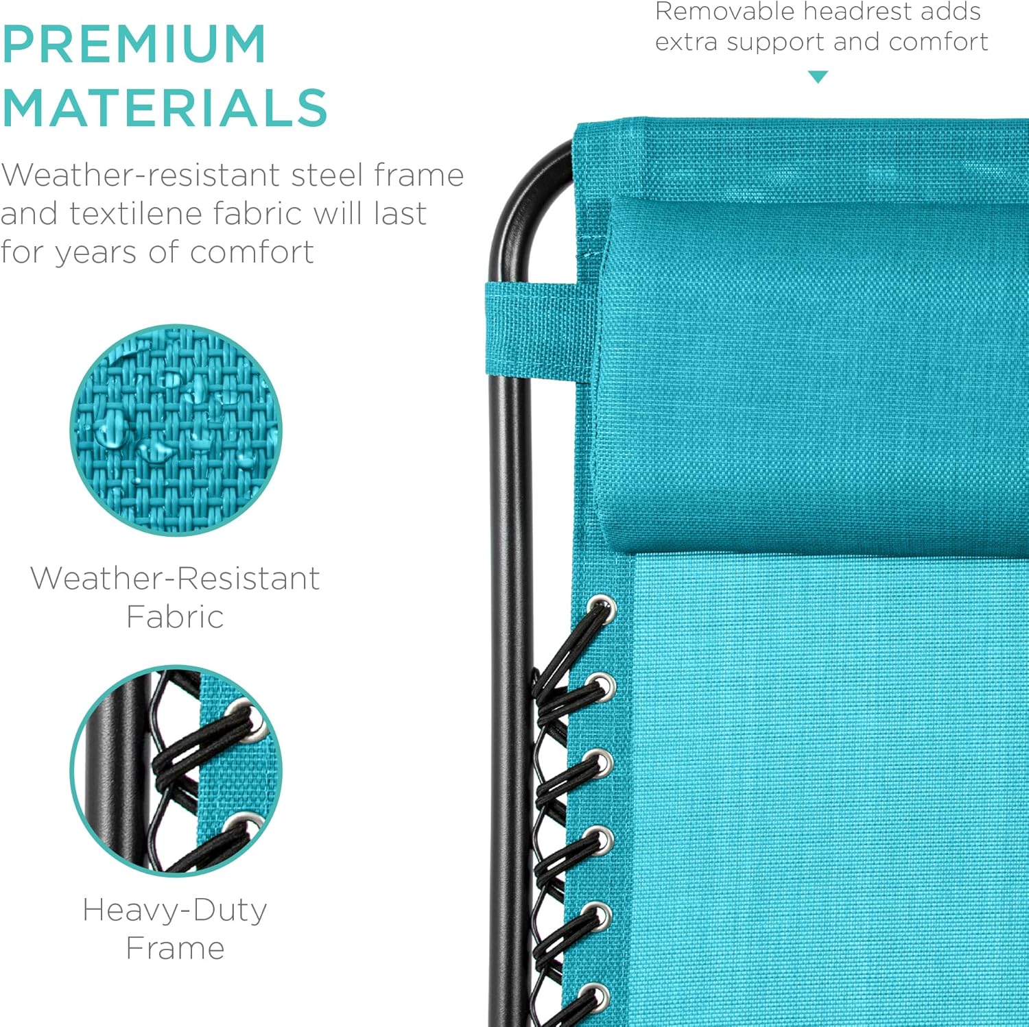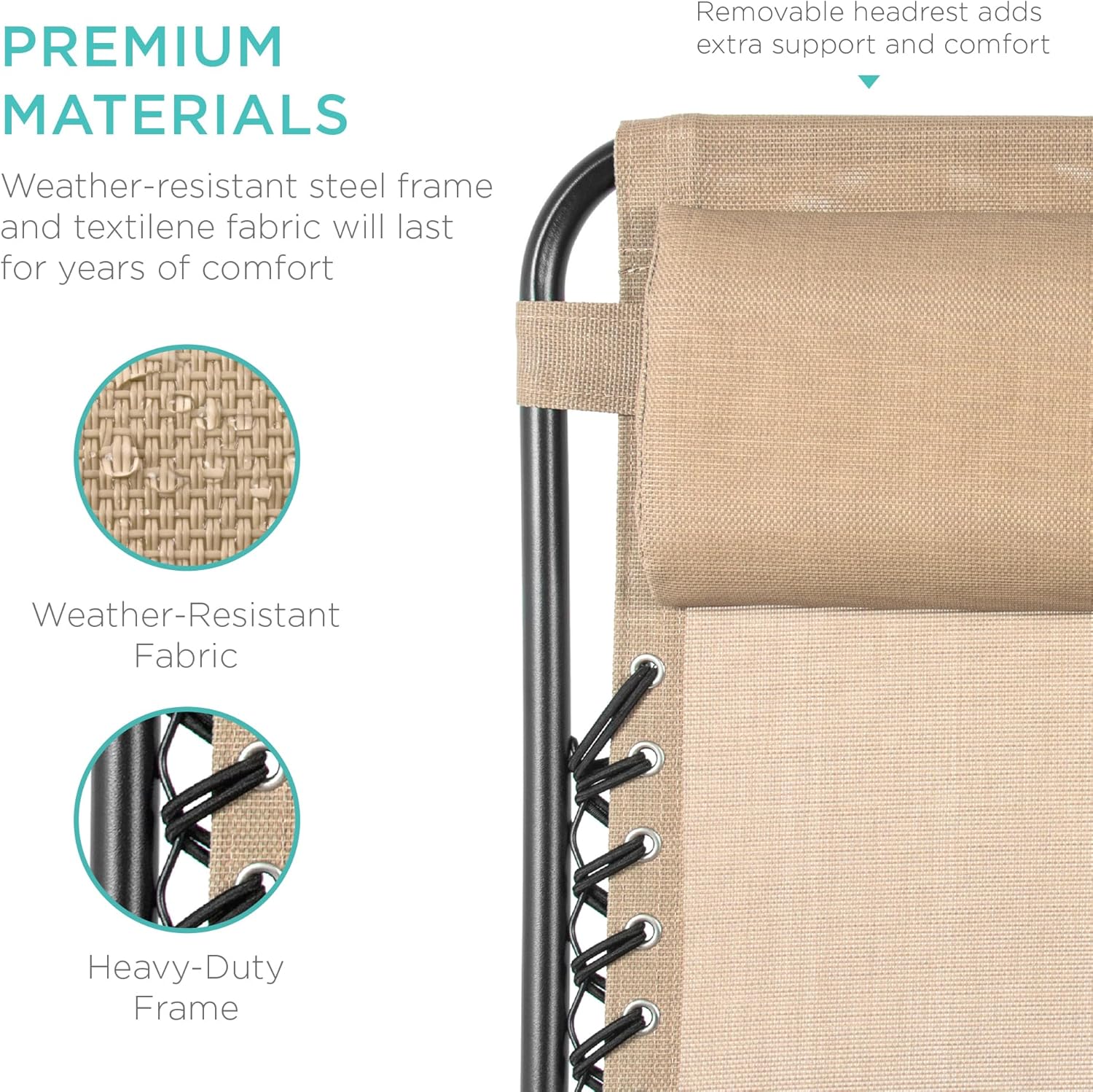 LOCKABLE RECLINING SYSTEM: Smoothly glides into an ergonomic zero-gravity position, with removable elastic cords that immediately adjust to your body's weight