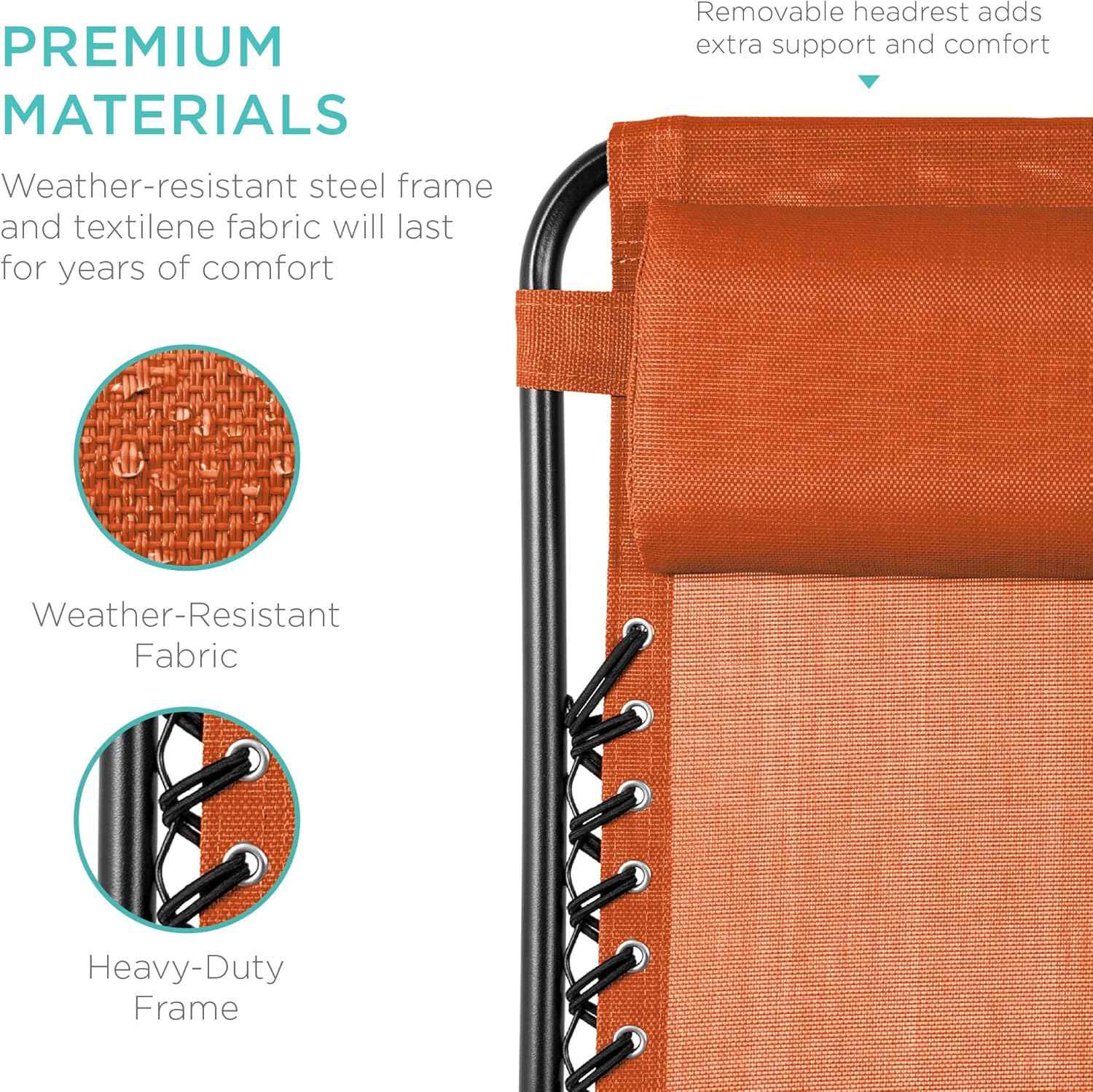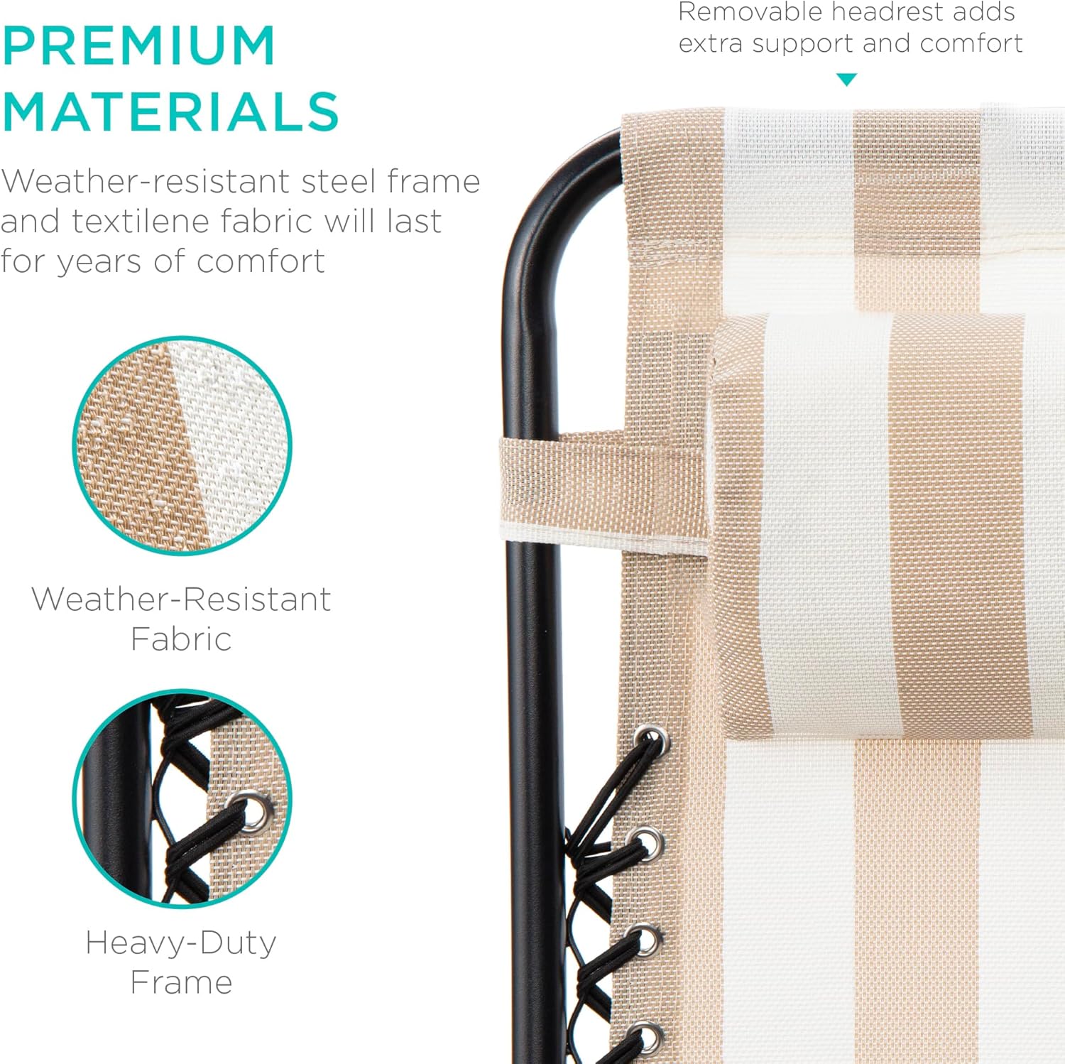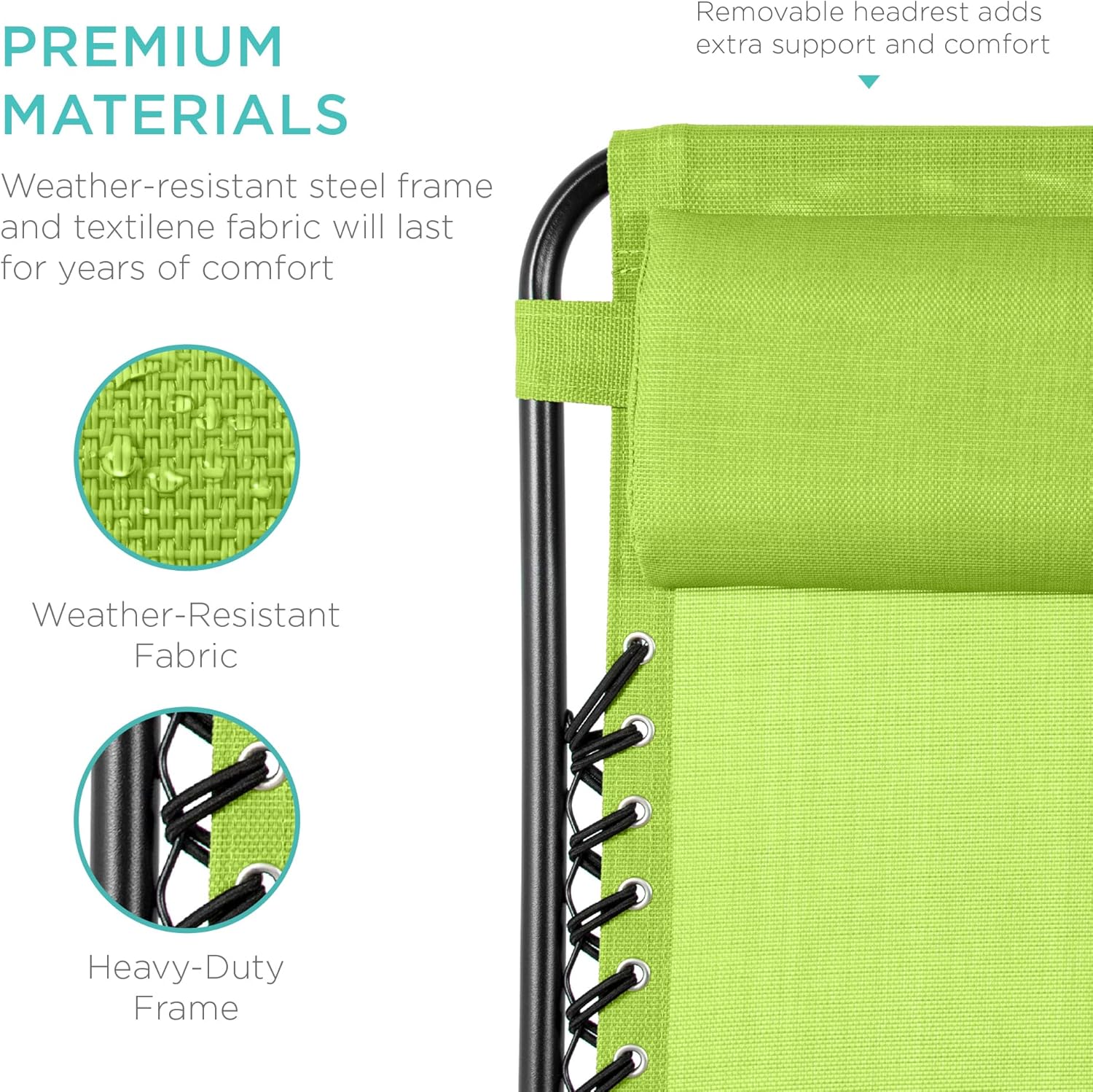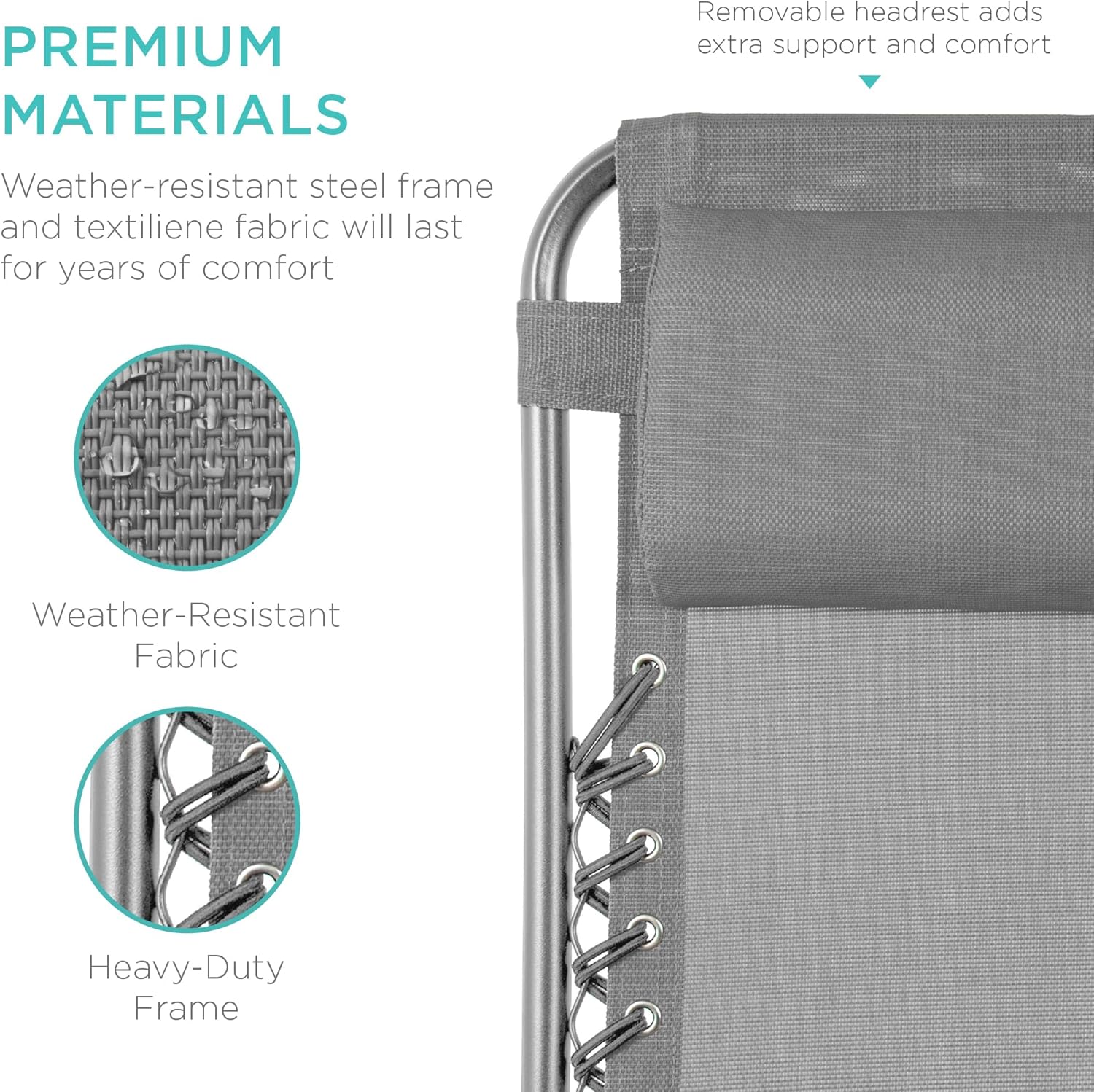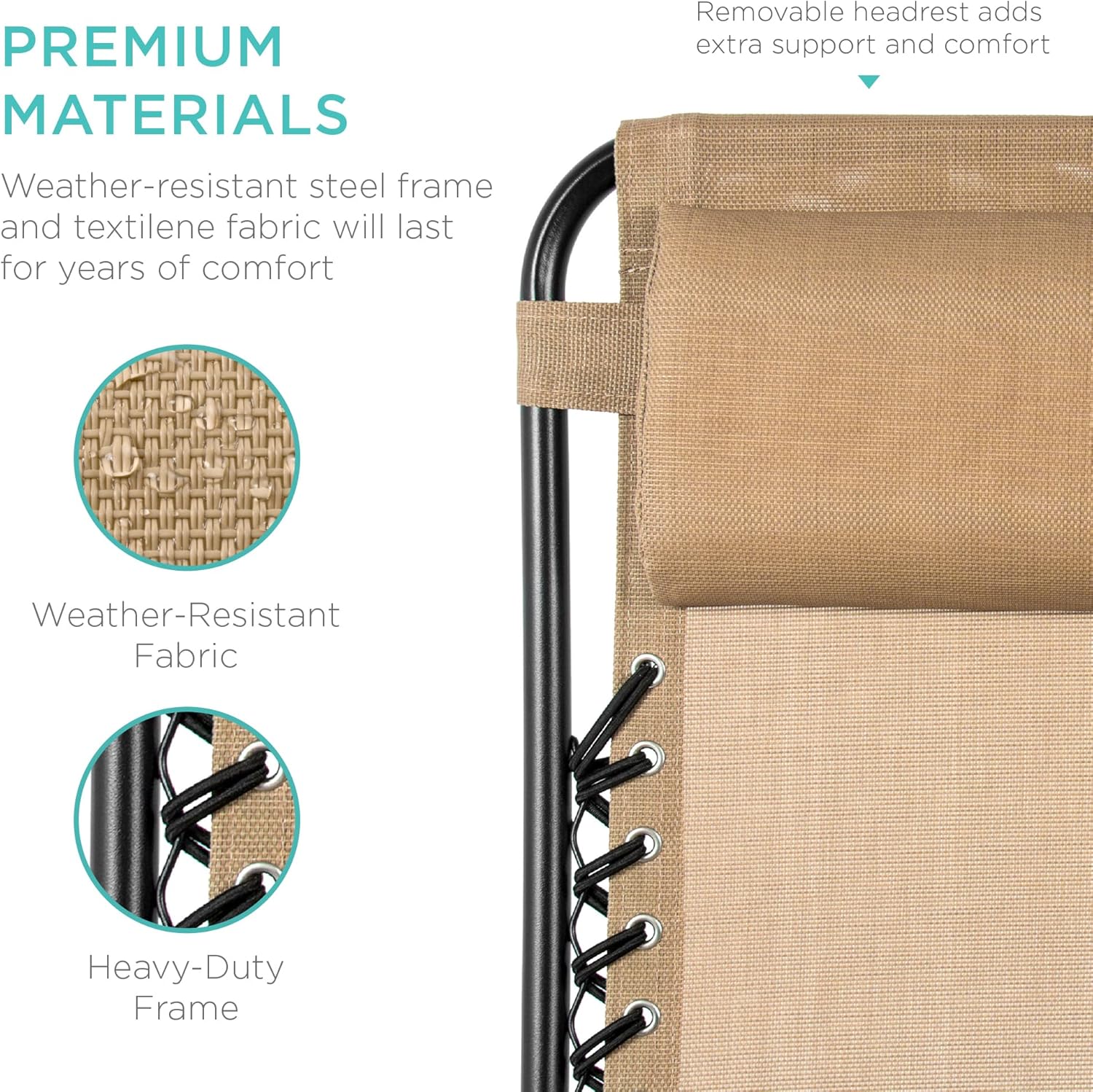 LOCKABLE RECLINING SYSTEM: Smoothly glides into an ergonomic zero-gravity position, with removable elastic cords that immediately adjust to your body's weight