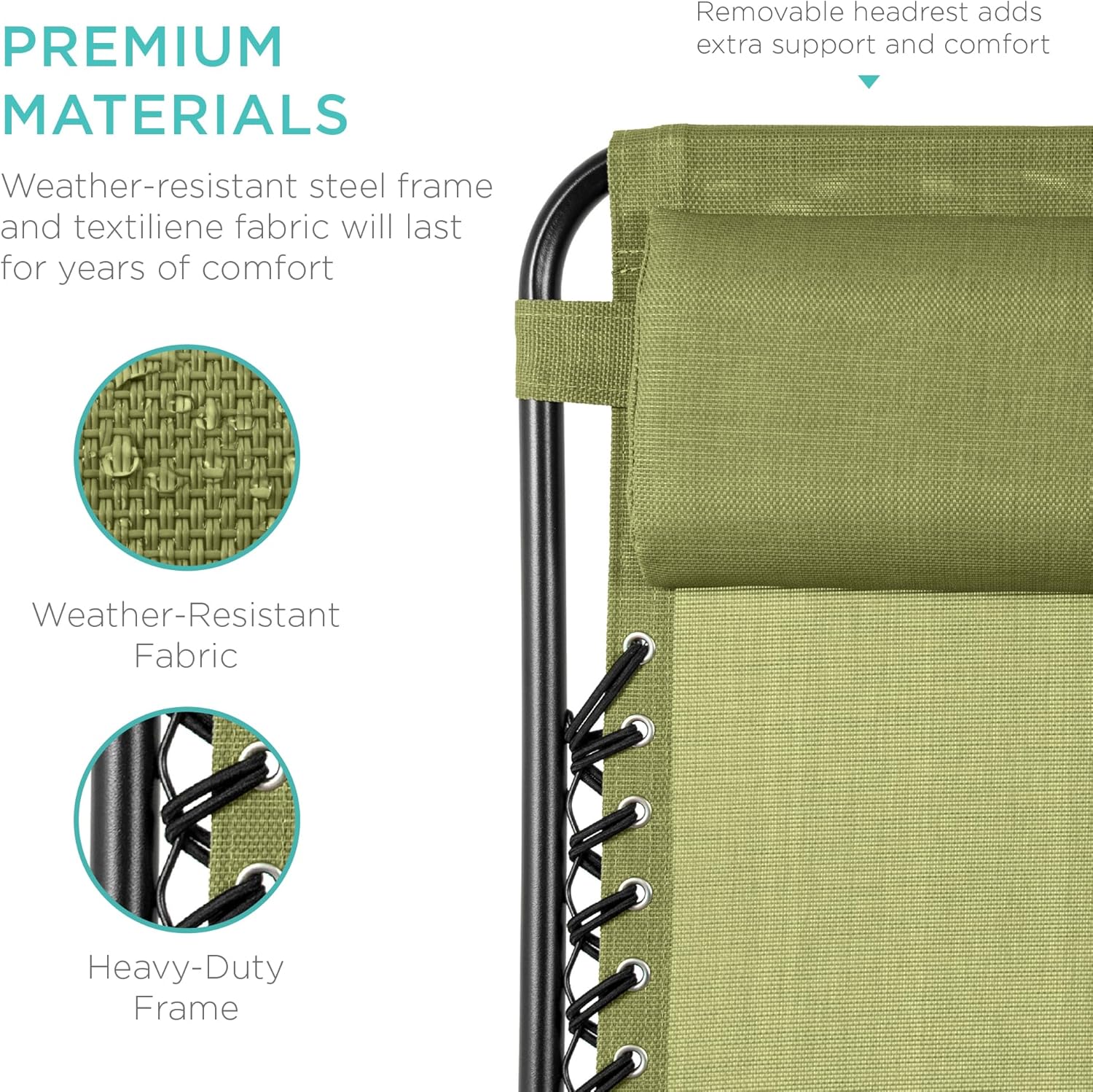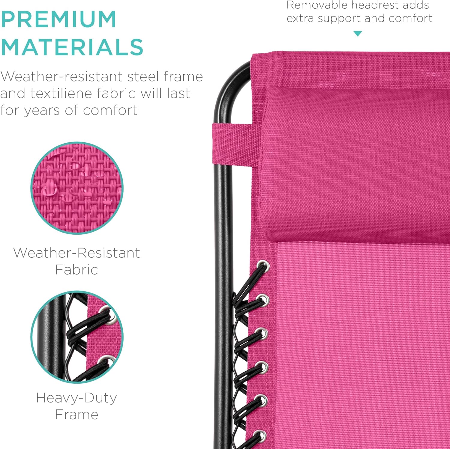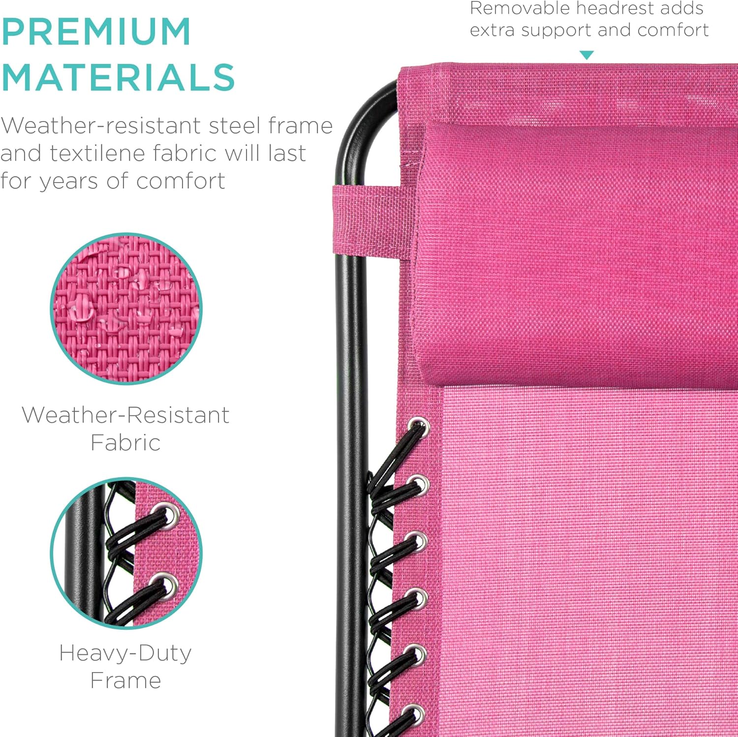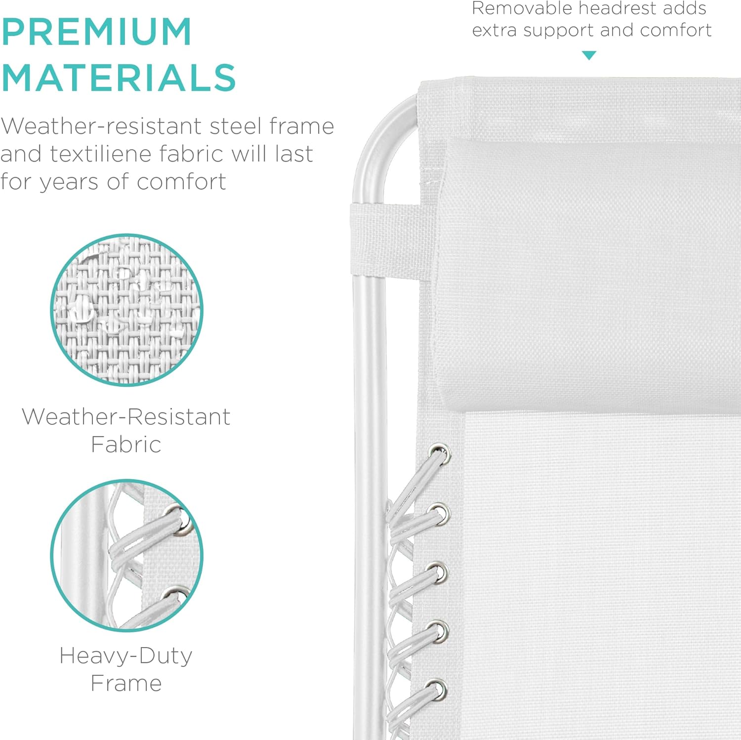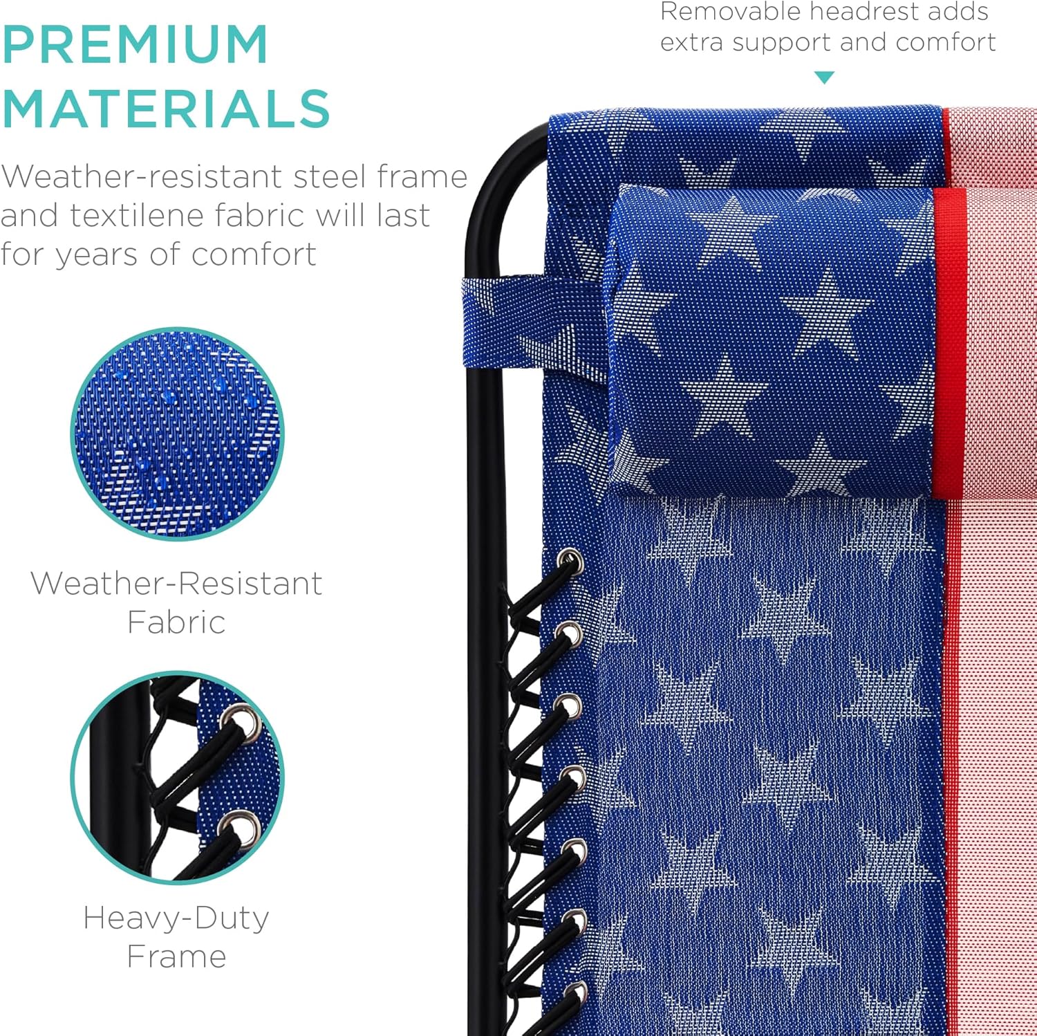 LOCKABLE RECLINING SYSTEM: Smoothly glides into an ergonomic zero-gravity position, with removable elastic cords that immediately adjust to your body's weight